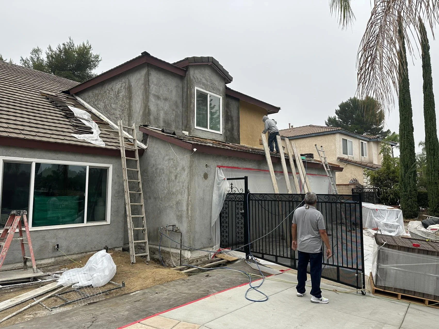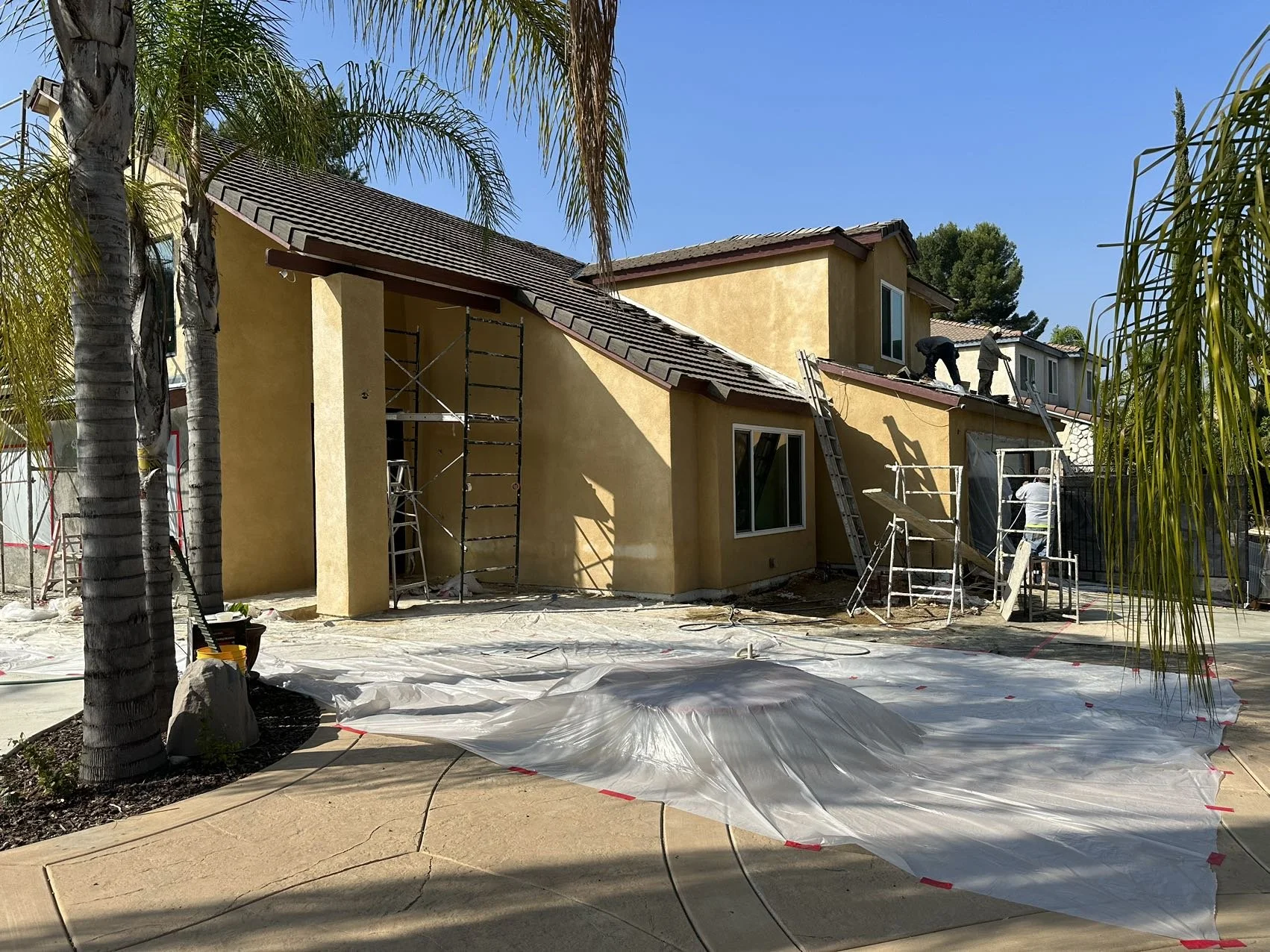 Crew working on stucco.